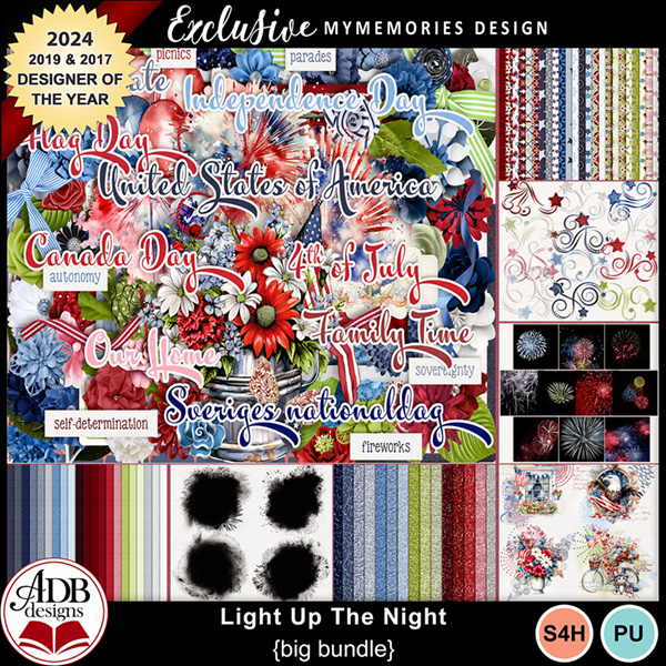 Did you "light up the night" on July 4th with friends and family? Did you see your local fireworks? The Light Up The Night Collection is ideal for Fourth of July parties, picnics, parades, and watching fireworks. But this isn't limited to the USA or Independence Day; it's appropriate for other US holidays and there are word titles for other national holidays: Sweden, Mexico, France and Australia.